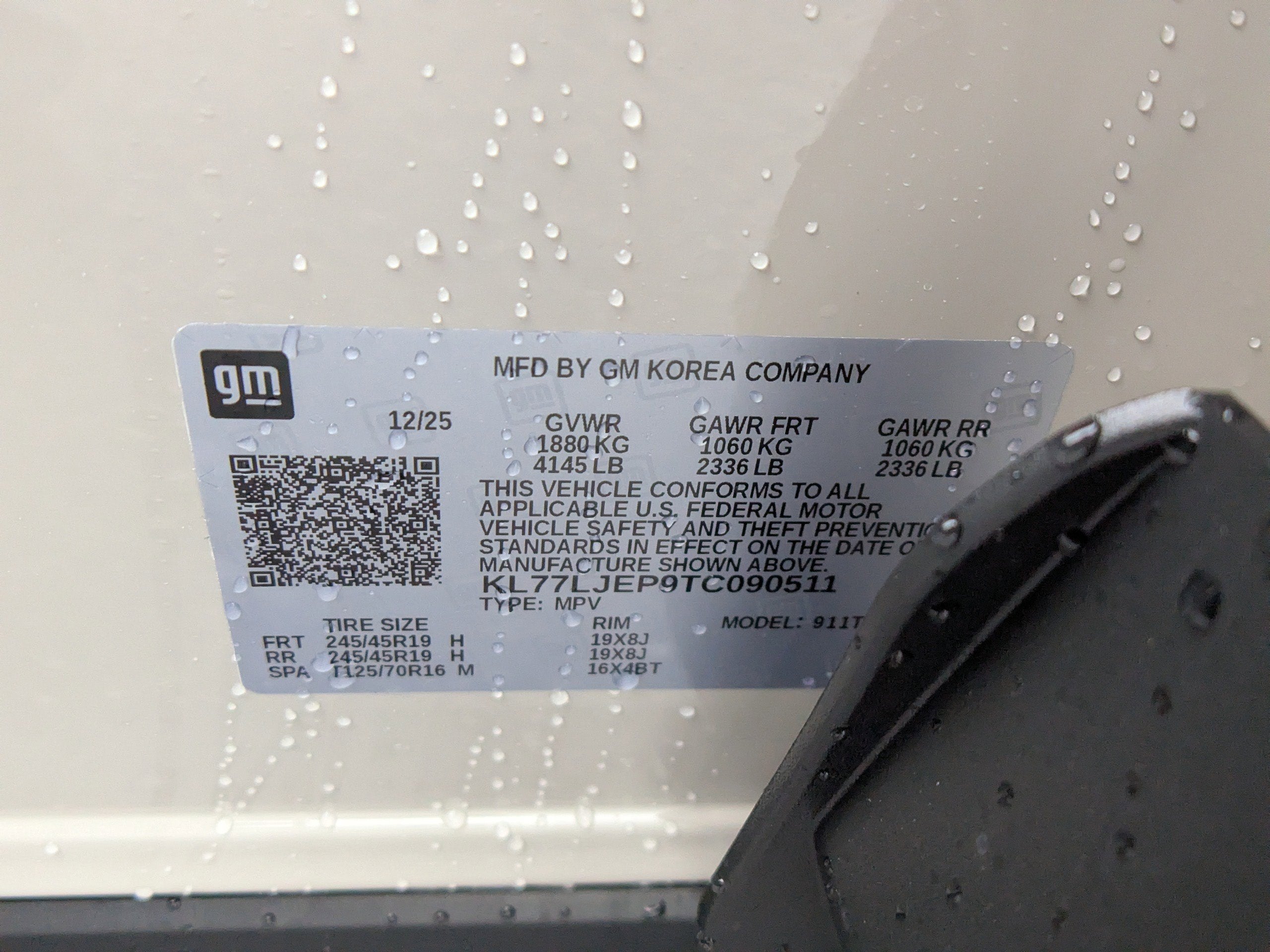 - Tires, 245/45R19 all-season, blackwall